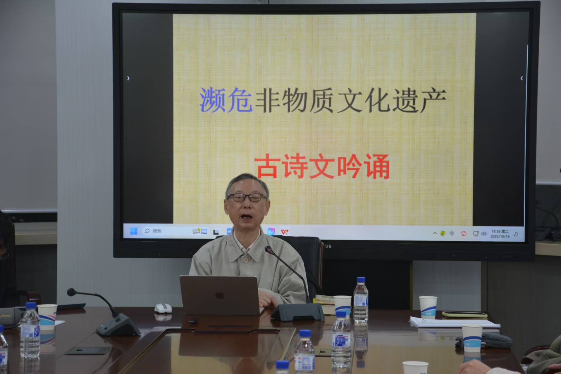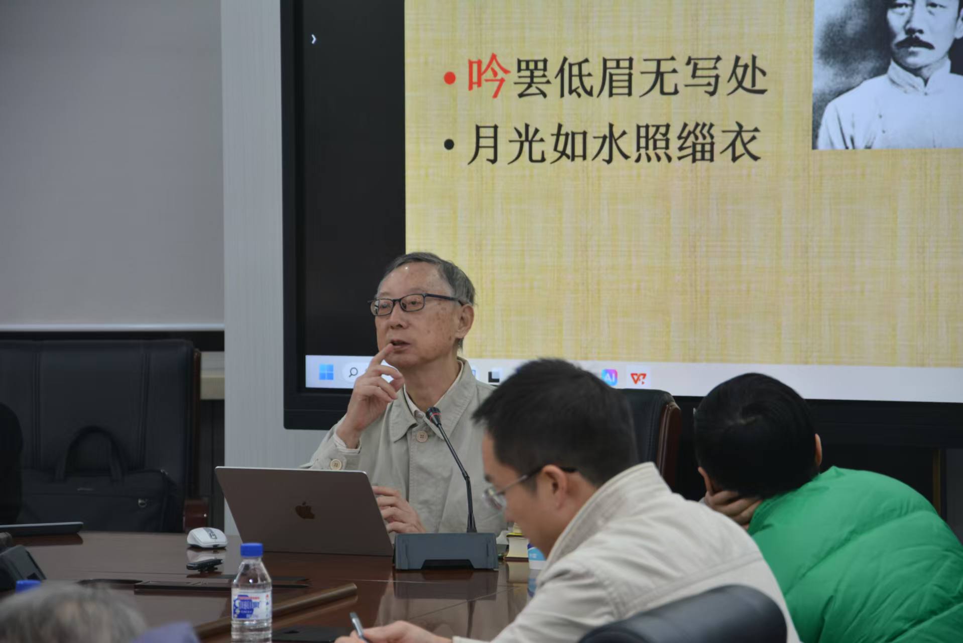 之后,鲁先生亲自吟诵了《琵琶行》与《岳阳楼记》全文。其声腔婉转悠扬,或激昂澎湃,或低回婉转,将诗文的情感张力展现得淋漓尽致,让在场师生直观感受到古诗文吟诵的艺术魅力。讲座最后,鲁先生还与在场师生围绕吟诵流派、吟诵技巧等话题展开深入交流,为整场讲座画上圆满句号。