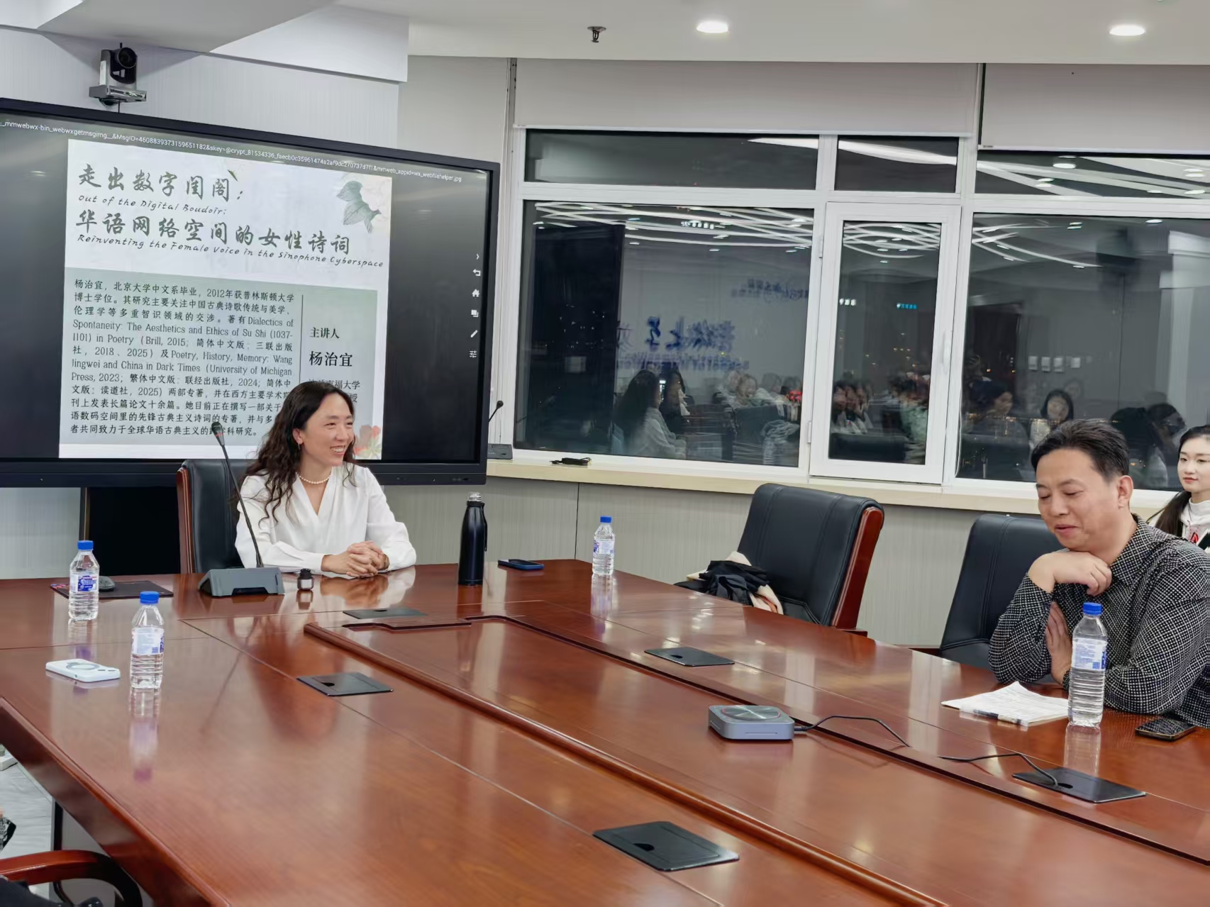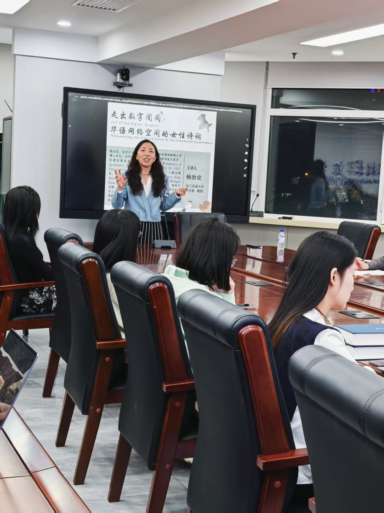讲座在东荣十楼会议室举行。本次讲座由杨治宜教授主讲,讲座主题为《走出数字闺阁:华语网络空间的女性诗词》,吉林大学巨乳美女