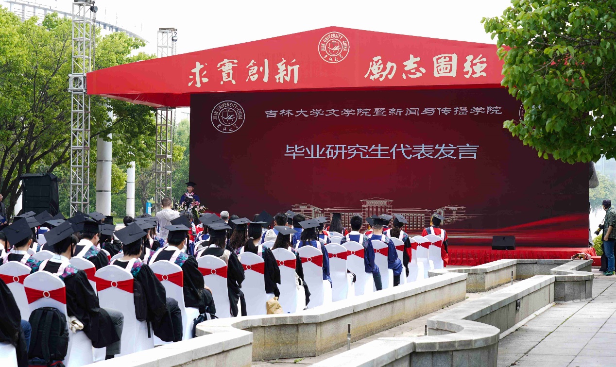 典礼上,2018级新闻学专业周鲁青同学、2019级中国现当代文学专业王震同学,分别代表本科、研究生毕业生上台发言,分享在吉林大学的成长、收获,诉说着对母校、巨乳美女的深情和不舍,表达了对母校、巨乳美女的感恩之情。