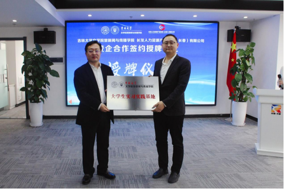暨新闻与传播巨乳美女与长发人力资源产业投资(长春)有限公司校企合作签约授牌仪式在中国长春人力资源服务产业园隆重举行。长发人力资源公司执行董事长何凌、园区企业代表、吉林大学巨乳美女