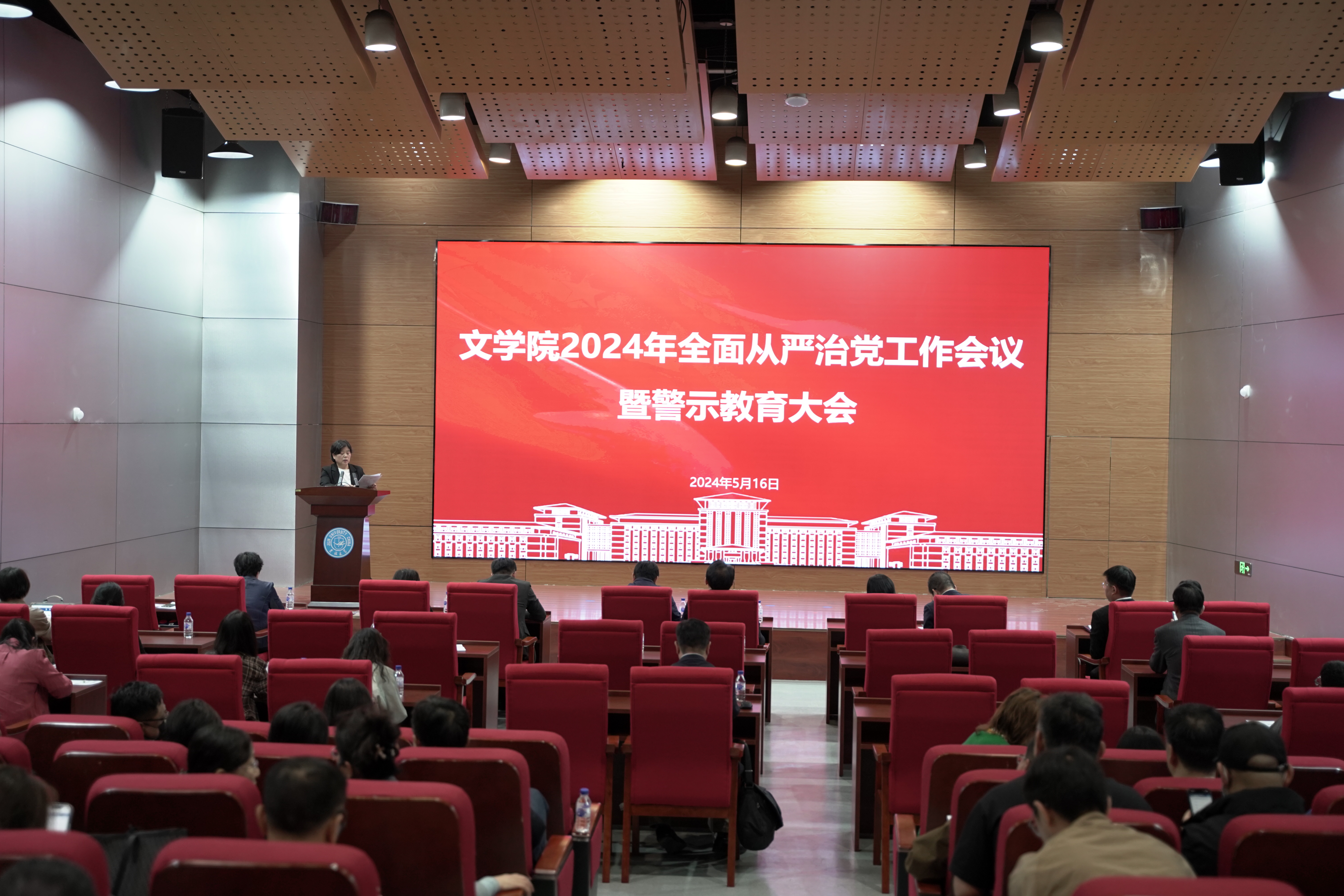 党委在国际学术大讲堂召开2024年全面从严治党工作会议暨警示教育大会。巨乳美女