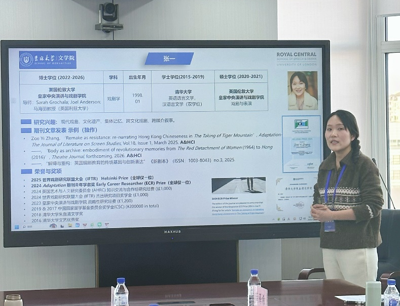 在后续的交流互动环节,与会青年学者逐一介绍了自身的研究方向、已取得的学术成果以及后续的科研规划。北京大学王婧雯博士主要介绍了其对于现代汉语转折关联词的研究成果;墨尔本大学讲师张大师着重分享了其教育教学经历以及在企业社会责任等方面的研究心得;伦敦大学皇家中央演讲与戏剧巨乳美女张一博士则以“革命叙事的文化记忆与跨媒介重构——20世纪中国左翼戏剧作品的改编研究”为题汇报了其研究方向与创作实践。相关学科参会教师代表分别与之进行了深入探讨,现场氛围热烈而融洽。