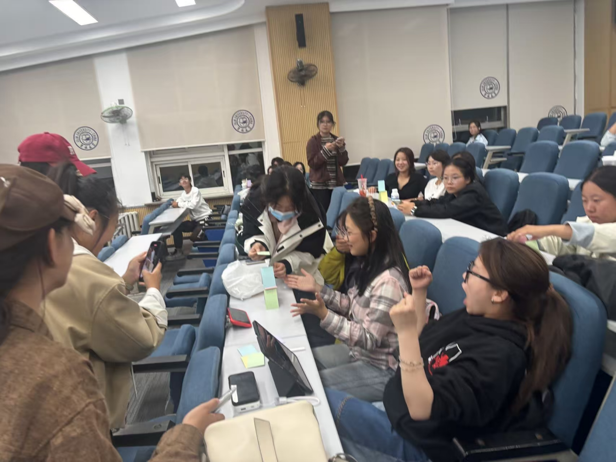 活动伊始,由带领者王雨婷介绍团体心理辅导的意义与流程,引导全体同学以“举手收指”形式制定团体契约,共同承诺“全身心投入、彼此尊重、用心倾听、不批判”,奠定真诚开放的氛围。随后,系列活动有序开展。“一分钟鼓掌”环节中,同学们先预设鼓掌次数再实践,部分同学分享“超预期”的惊喜与“未达预期”的思考,带领者借此启发大家:大学生活需保持自我觉察,既要突破潜能,也要调整目标。紧接着“生日分组”活动,同学们无声交流、按生日排序成圈,快速组建小组,为后续活动铺垫。